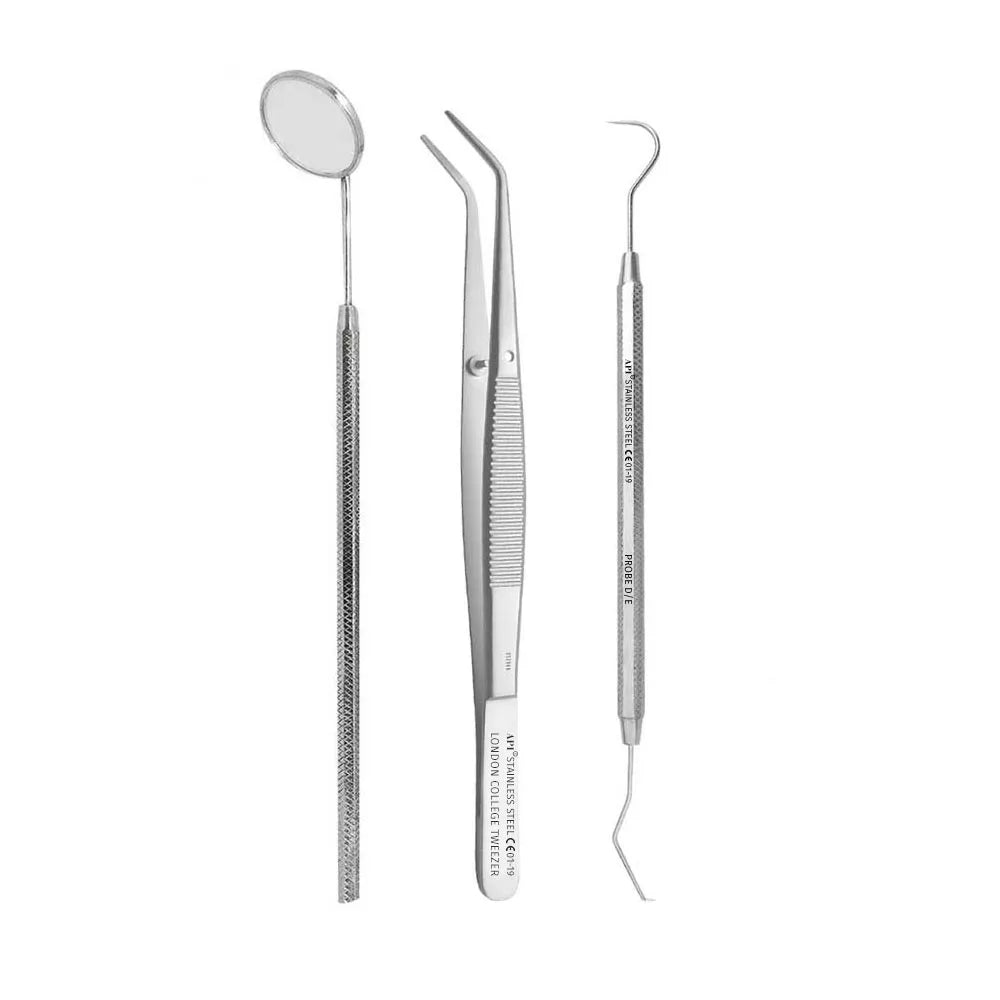 Diagnostic PMT Set is a premium quality PMT Set used in diagnosis & treatment planning in Dentistry. It has been especially designed with classic quality Front Surface Mouth mirror provides no image distortion and clear image formation of parts of oral cavity. Single Ended Probe (Straight Probe) is ideal for detecting caries/pits in oral diagnosis London College Tweezer (Cotton Plier) is an essential instrument in your Diagnostic Kit for correct & appropriate diagnosis.
